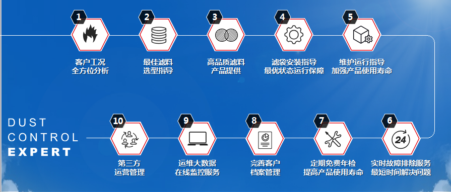 提供售前、售中、售后的全環(huán)節(jié)專業(yè)陪伴:客戶工況*********分析、合理濾料選型指導、高品質濾料產品提供、濾袋安裝指導***優(yōu)狀態(tài)運行保障、維護運行指導、實時故障排除、定期免費年檢、完善客戶檔案管理、運維大數(shù)據(jù)在線監(jiān)控及第三方運營管理服務。